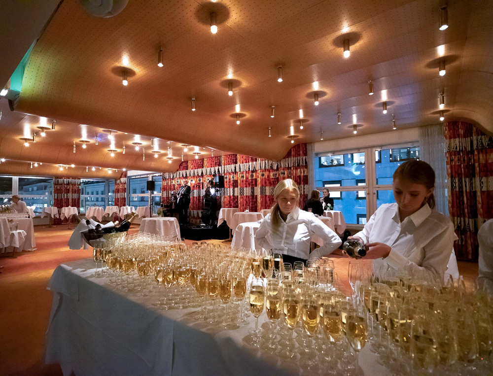 – Att man rör sig på flera plan är också väldigt uppskattat. Man äter lunch i matsalen på första etaget för att sedan dricka kaffet efter maten i Stora Klubben på övervåningen. Har man fest så tar man fördrinken en trappa upp innan man går ner och äter, säger Daniel.