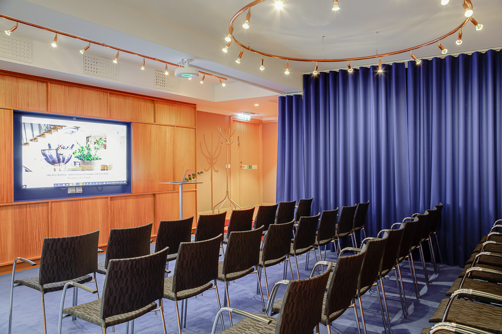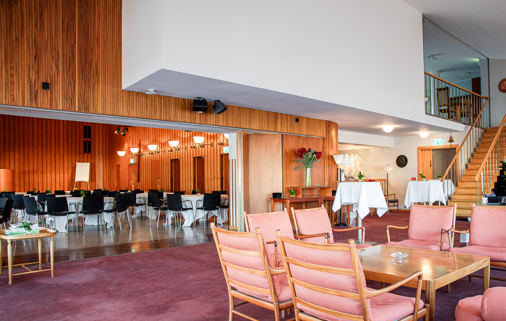 Byggets 700 kvadratmeter är flexibla och dynamiska. Hela våningen består av tre etager, vilket skapar både lättillgänglighet och avskildhet för konferensens olika aktiviteter. Här finns en stor konferenslokal, Markeliussalen, som rymmer 180 personer i biosittning och precis intill ligger en härlig lounge, Stora Klubben, med bar och sköna sittgrupper för fikat eller kvällsminglet.