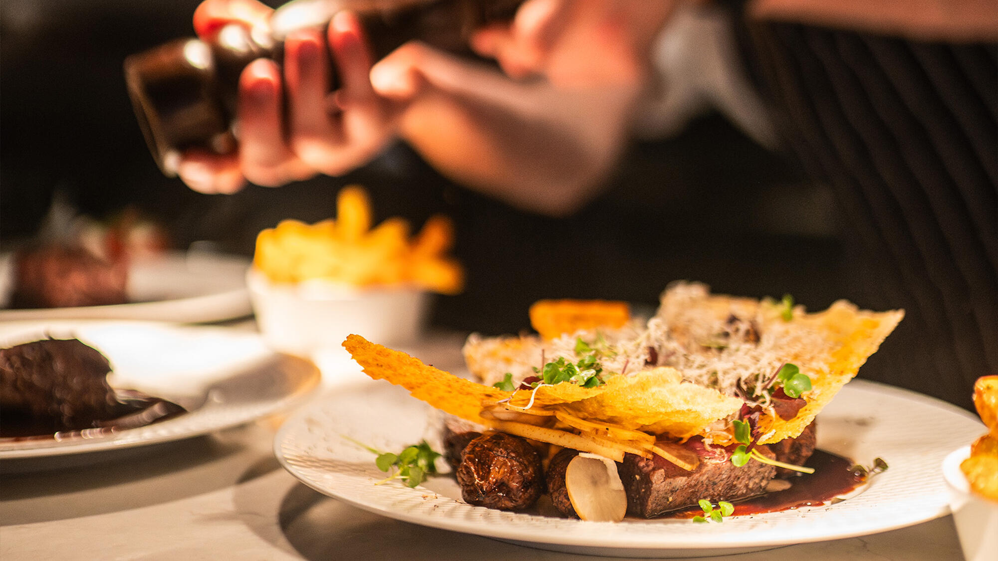 Och en riktigt bra upplevelse vid matbordet sätter ofta tonen på helheten, och så även här. Den guldskimrande baren leder in till matsalen med dess vackra originalarkitektur, där köket serverar svensk-fransk brasseriemat från morgon till kväll – allt från välsmakande omelett till kolgrillad piggvar. Och under ledning av köksmästare Anton Jansson står maten alltid i centrum, och varje dag tänds grillen för att sätta extra glöd på middagarna.